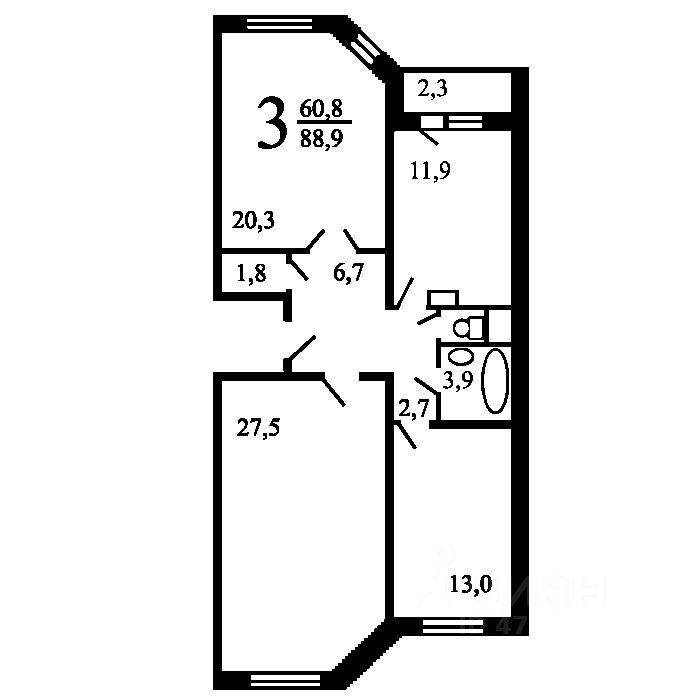 43 м² · Этаж 3 из 3
