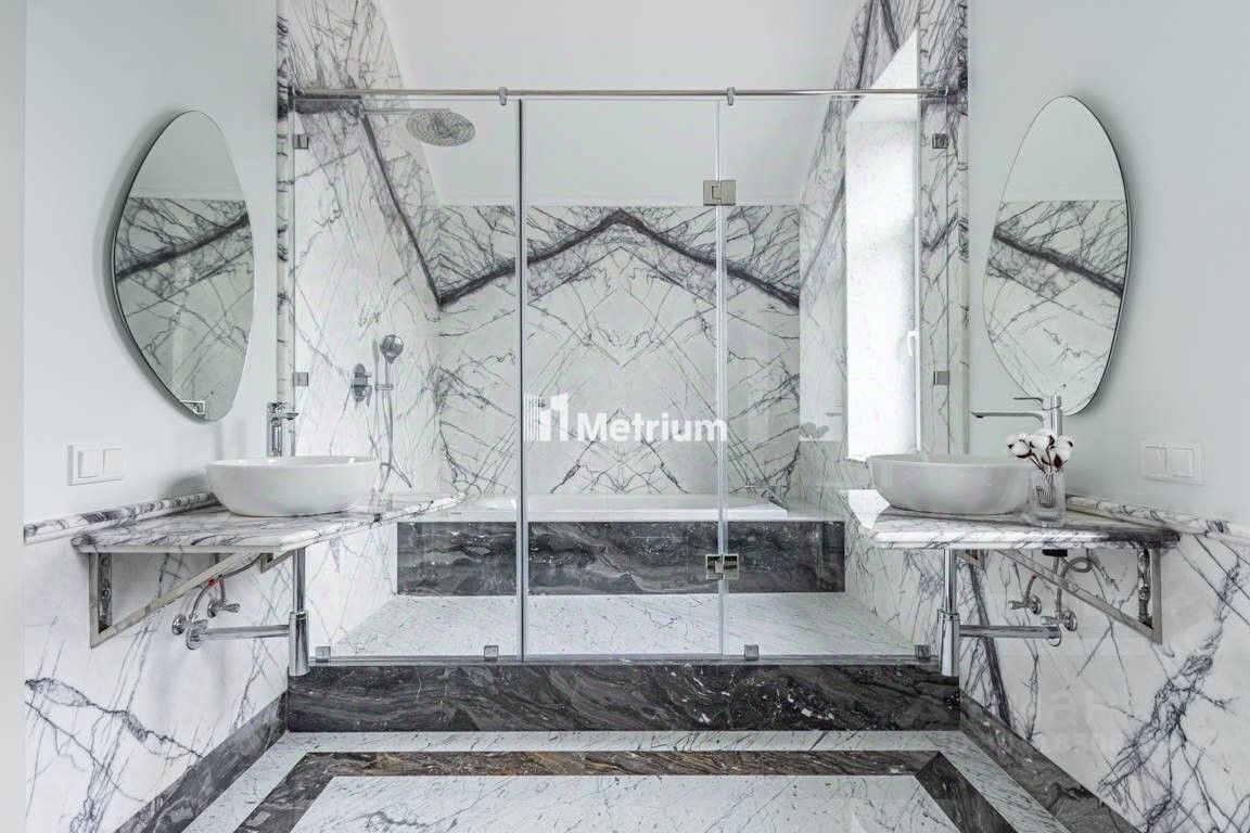 ID 13531 Новый загородный дом в охраняемом посёлке Усово 8 площадью 400 м2, на участке 8 соток. Фасад здания облицован клинкерным кирпичом. Интерьер и дизайн дома выполнен в современном стиле. Планировкой предусмотрены 4 спальни, каждая спальня со своими с/у и гардеробными комнатами. В гостиной панорамное остекление с выходом на улицу в зону отдыха. Цокольный этаж можно использовать как жилое помещение, высокие потолки и большие светлые окна дают возможность сделать ещё одну спальню со своим с/у. Так же в цокольном этаже выделена Spa - зона (сауна, купель). Коммуникации центральные, 15 кВт.