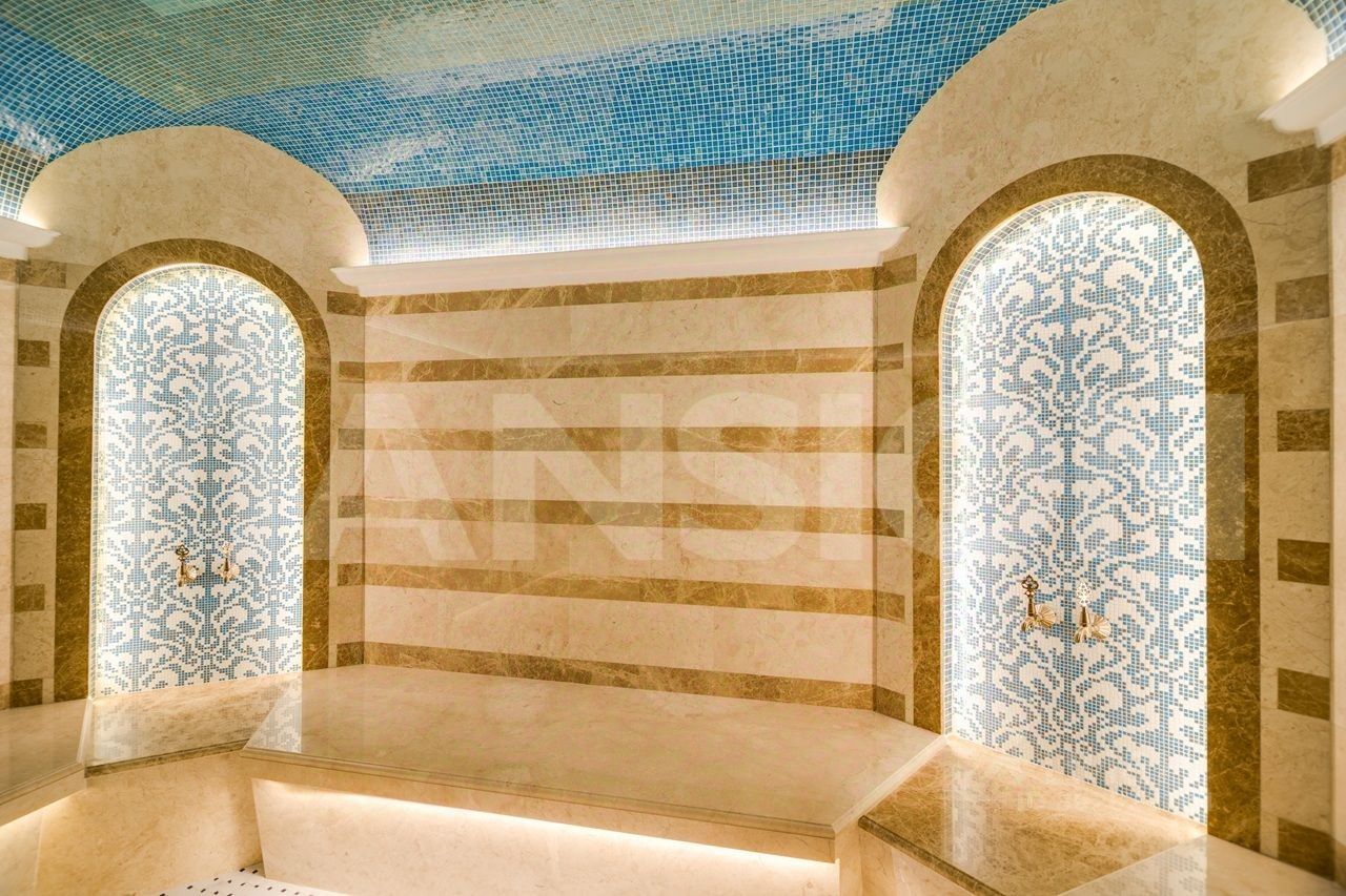 2 этаж: 3 спальни со своими с/у и гардеробными, кабинет. В поселке есть собственная инфраструктура - многофункциональный фитнес-центр, СПА с бассейном и кафе, детские и спортивные площадки, парковка для гостей. (лот 7815)