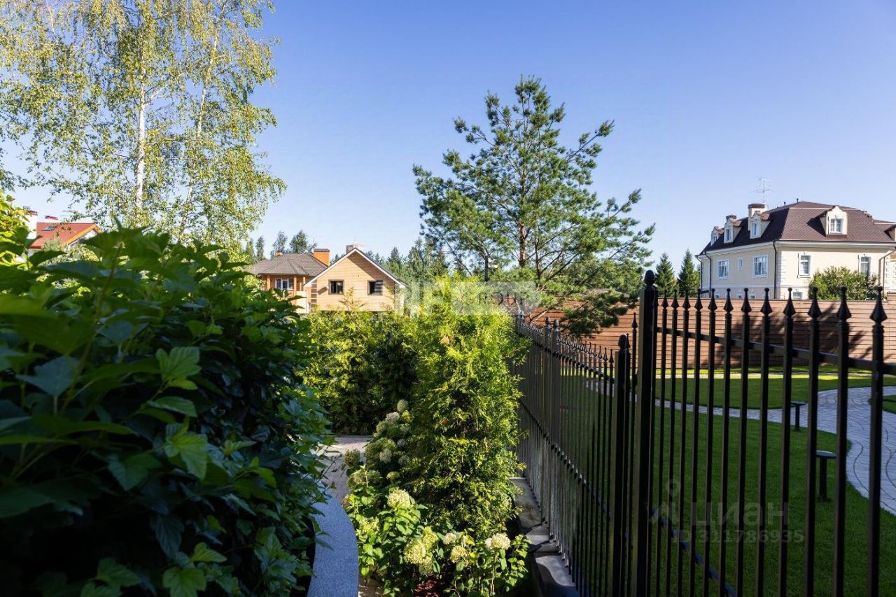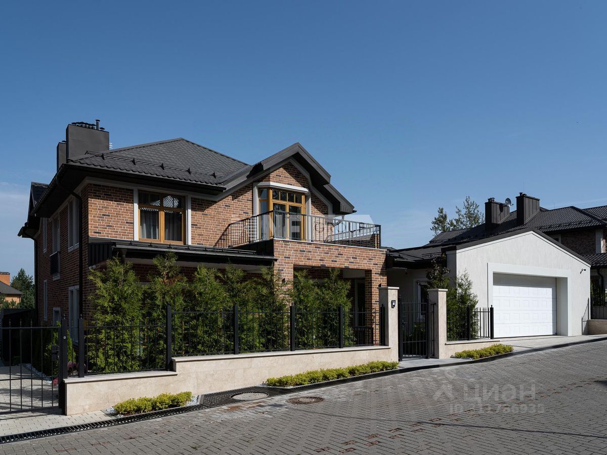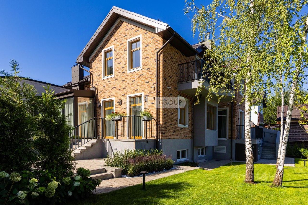 Загородный дом, площадью 472 кв. м на участке 8 соток в уютном, небольшом коттеджном поселке на Рублевке. Фасад здания в европейском стиле отделан немецким клинкерным кирпичом. Установлены деревянные окна из золотистого дуба и декоративная подсветка. Имеется гараж на 2 м/м, на участке сделан ландшафтный дизайн. Современный интерьер сочетает светлые оттенки стен, дубового паркета и ярких акцентов в виде каминного портала из цельного куска каррарского мрамора, мебели из палисандра ручной работы, дизайнерской мебели ведущих итальянских брендов Cassina, Poltrona Frau, Pianca, кухня оборудована бытовой техникой Gaggenau. Точка притяжения в доме - ''Зимний сад'' с камином, со вторым светом и панорамным остеклением, открывающим выход во внутренний дворик со своим патио и очаровательным декоративным садом. На втором этаже 3 спальни с со своими санузлами и гардеробными. Две большие спальные комнаты имеют собственные балконы, а одна из них двух двухуровневую планировку. На Цокольном этаже - место для отдыха с финской сауной, помещения для хранения, комнаты для персонала и котельная с отдельным входом. Дом оснащен передовыми инженерными системами: премиальная сантехника из Италии и Германии, интеллектуальное управление климатом и безопасностью через приложение (включая систему Buderus с двумя котлами), бесшовныи интернет, приточно-вытяжная система и канальное кондиционирование Daikin. Установлены пожарная сигнализация и датчики протечек, видеонаблюдение по периметру дома, ландшафтное и фасадное освещение.