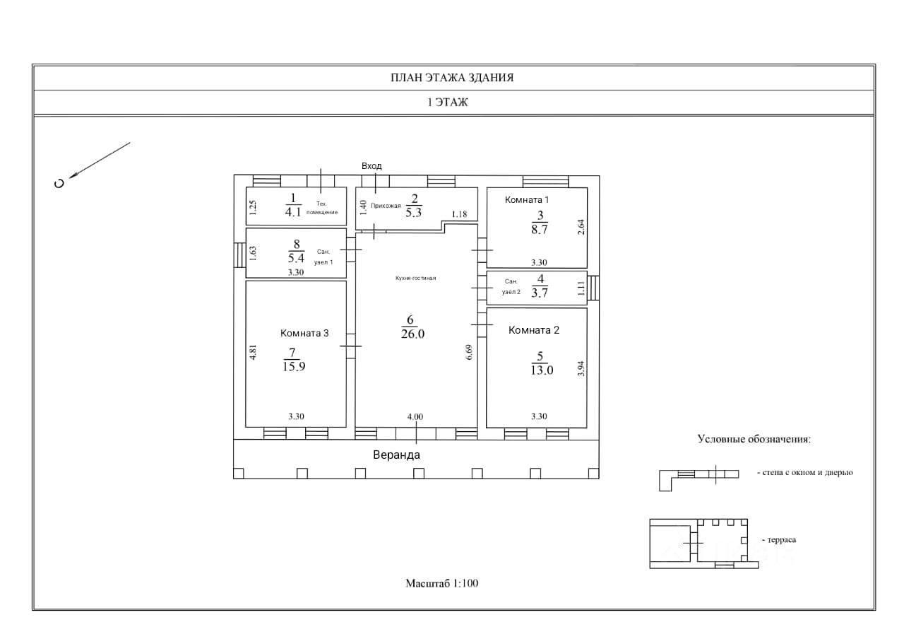 Дом имеет площадь 120 квадратных метров и находится на участке размером 7 соток. Идеально подходит для круглогодичного проживания, так как все коммуникации уже подведены. Функциональная планировка включает в себя: кухню-гостиную 26 квадратных метров с выходом на террасу (23 квадратных метра), три изолированные комнаты (16, 13 и 9 квадратных метров), два санузла (5,5 и 4 кв.м), две гардеробные и техническое помещение (4 кв.м). Дом огорожен металлическим забором с калиткой и распашными воротами, а также имеет навес для машины из металлического каркаса с бетонным основанием. Технические характеристики дома: - Фундамент монолитная плита с ростверком под несущие стены. - Крыша - прочная металлочерепица толщ. 0,5мм., утепленная - Стены газобетон Бонолит D500 толщ. 400мм, снаружи штукатурка армированная, декоративная штукатурка короед с окраской фасадной краской. - Колонны и наличники обрамлены натуральной лиственницей. - Металлическая входная дверь. - Остекление ПВХ (2-й стеклопакет 65 профиль) - Навес для автомобиля из металлокаркаса, поликарбонат, бетонированное основание. Коммуникации: - Вода - скважина на участке, кессон, вода проведена в дом. - Канализация - локальное очистное сооружение (четырехуровневый автономный септик), подведена в дом с разводкой по месту (санузлы, кухня и т.д.) - Электричество - 15 кВт, электрощит. - Газ по границе участка Инфраструктура: В микрорайоне есть всё необходимое для комфортной жизни: школа, детский сад, магазины, аптека, больница. Автобусная остановка находится в пешей доступности. Помощь в одобрении ипотеки
