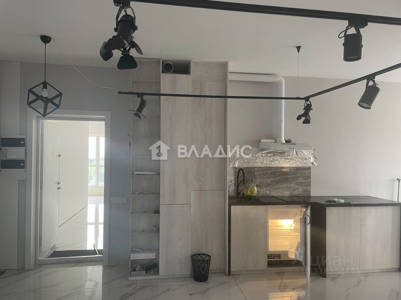 Общая площадь квартиры составляет 80 квадратных метров, из которых 15 квадратных метров приходится на жилую площадь, а 50 квадратных метров — на кухню-гостиную. Высота потолков — 2,8 метра. В квартире сделан евроремонт, есть два санузла — раздельный и совмещённый.