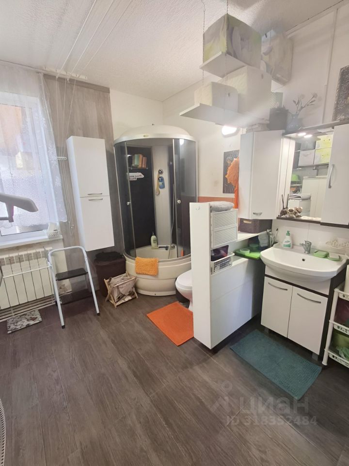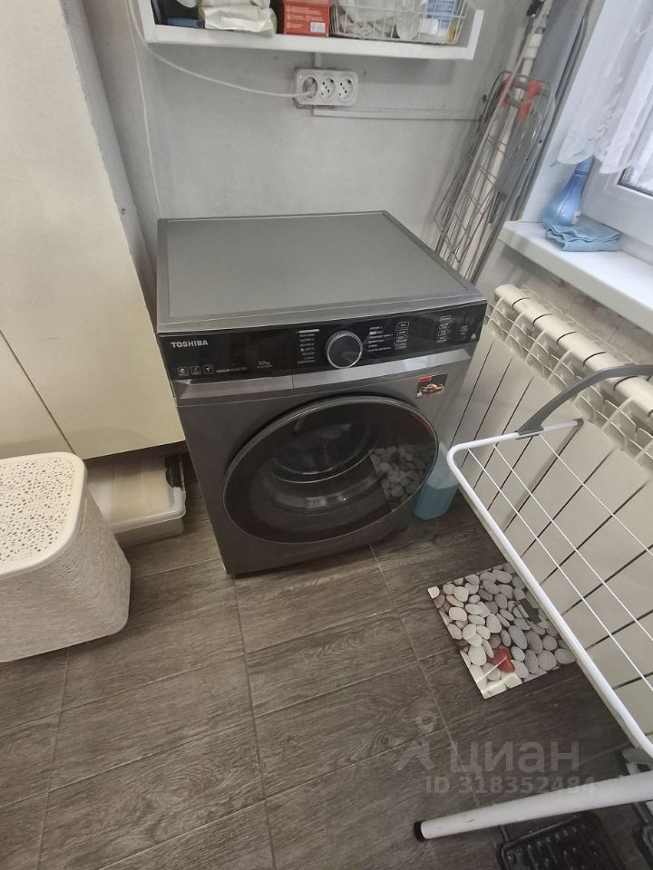 Санузел в доме с душевой кабиной, туалетом, раковиной и стиральной машиной, канализация септик.
