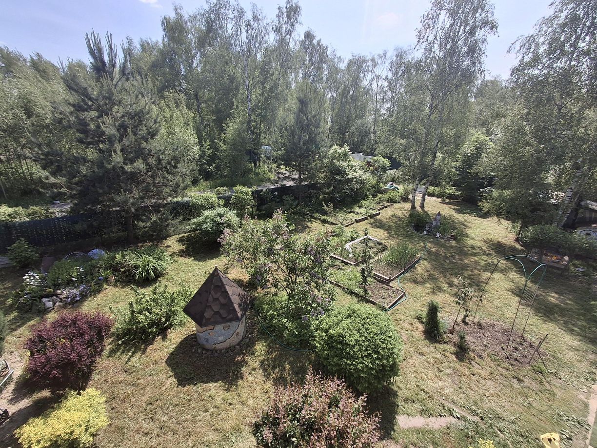 На участке растут ели, березы, сирень, плодовые кусты - смородина, жимолость.