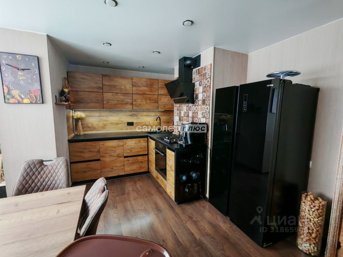 - на 1-м этаже просторная прихожая, гостиная, объединенная с кухней, оборудованной встроенной мебелью и техникой, санузел, лестница на 2-й этаж