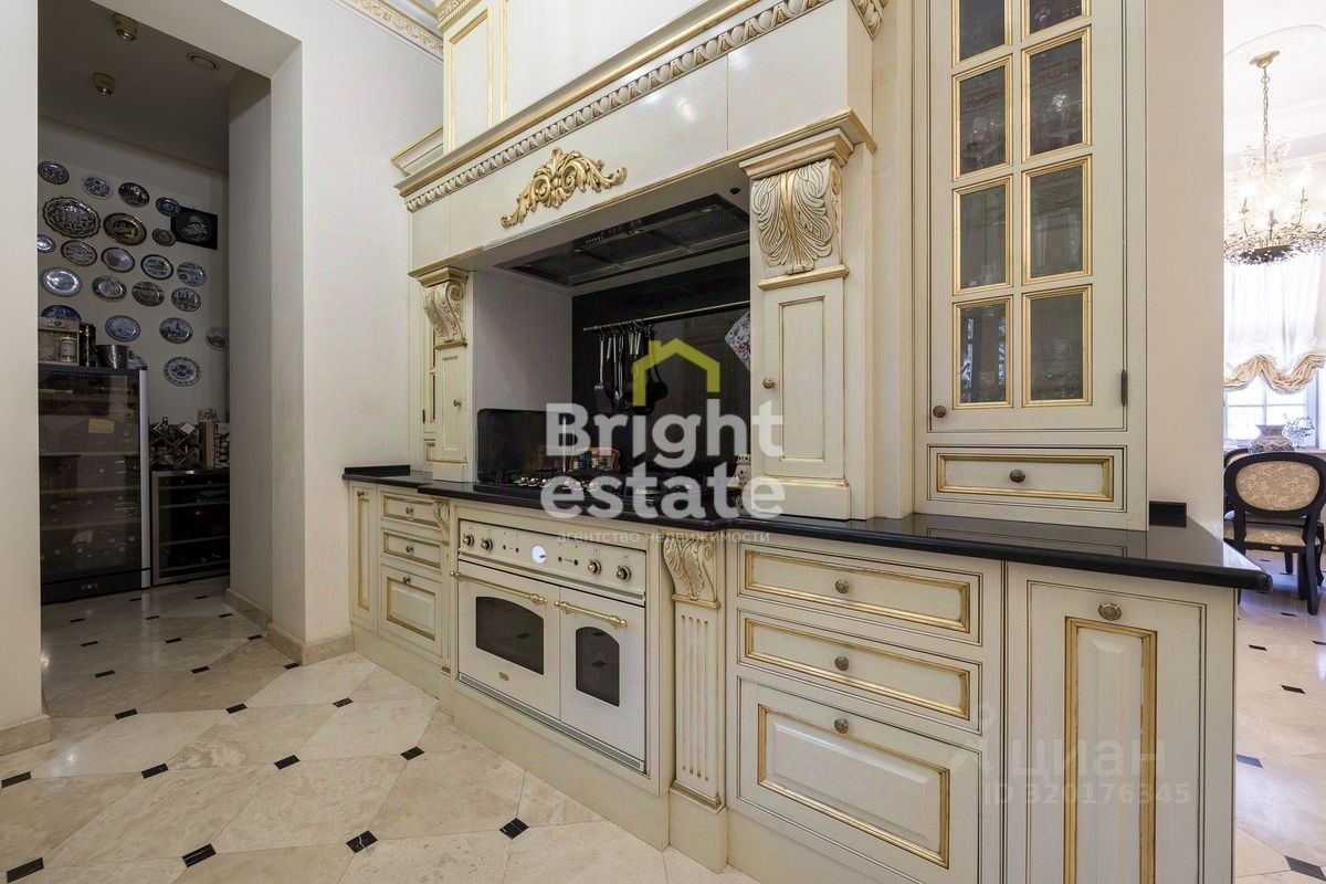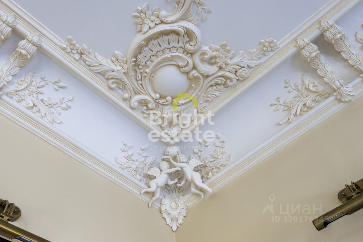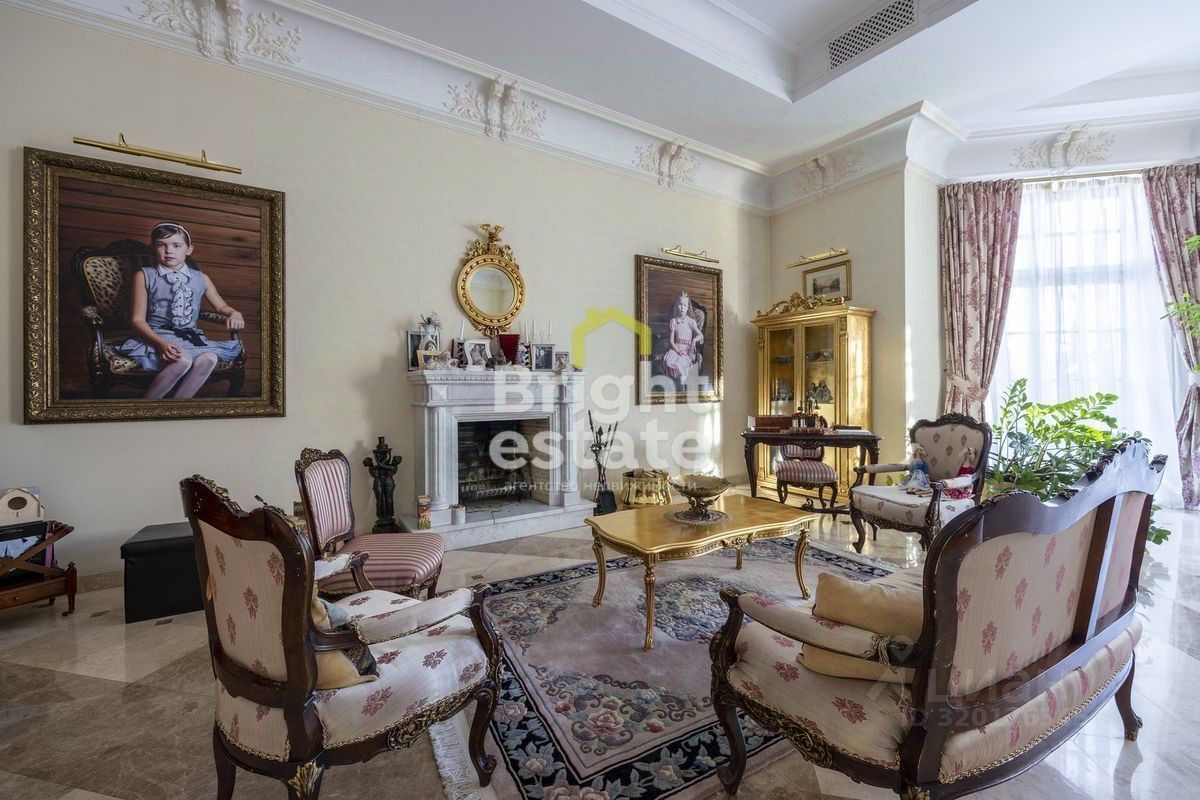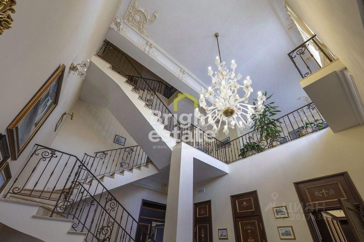 Каждая деталь в этом доме продумана с любовью к классике и стремлением к комфорту. Интерьеры наполнены светом и воздухом, высокие потолки с лепниной создают ощущение торжественной лёгкости. Белоснежный камин в гостиной — не просто элемент декора, а центр семейного тепла. Элементы интерьера — от старинного буфета до резных зеркал и витражей у бассейна — подчеркивают утончённый вкус и статус владельца.