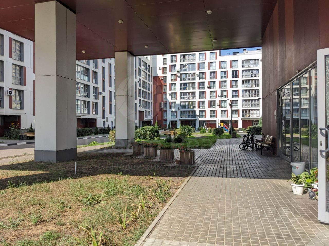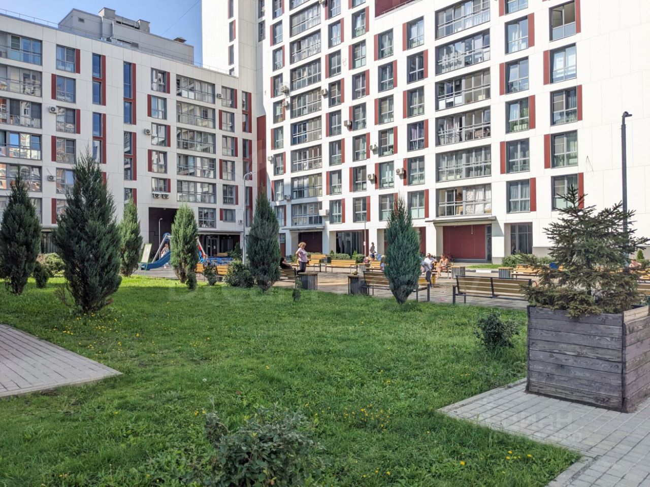 Дом расположен в удалении от шумных дорог, двор без машин, детские безопасные площадки, места для отдыха, выполнено ландшафтное озеленение внутри двора. Вход и выход по ключу, доступ только для жителей дома.