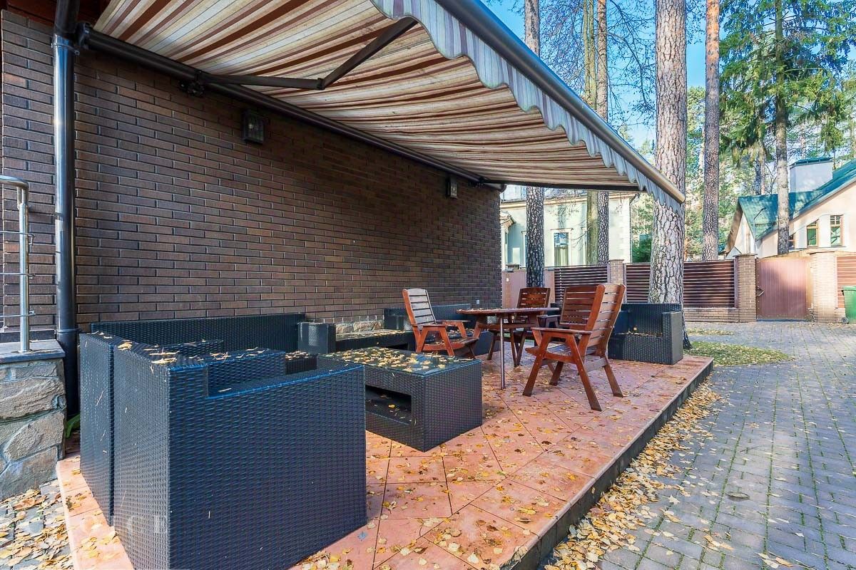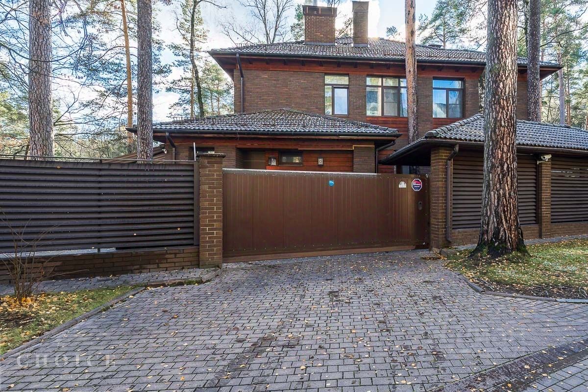 Лот 43508. Приглашаем вас посетить эксклюзивный загородный дом площадью 300 м² в элитном коттеджном поселке ''Конус'', всего в 10 км от МКАД по Рублево-Успенскому шоссе. Данный дом воплощает единую архитектурную концепцию поселка, с фасадами из натуральных материалов: дерева, камня, плитки. В доме на первом этаже находятся кухня, столовая, гостиная, кабинет, санузел, гардероб, а на втором этаже - три просторные спальни, каждая с собственным санузлом и гардеробной. Участок площадью 9 соток включает дом для персонала, парковку на 2 автомобиля и навес на 2 машины, расположенный в лесной зоне для свежего воздуха и тишины. Поселок ''Конус'' - охраняемая территория в сосновом бору рядом с Москва-рекой, где всего 22 дома.