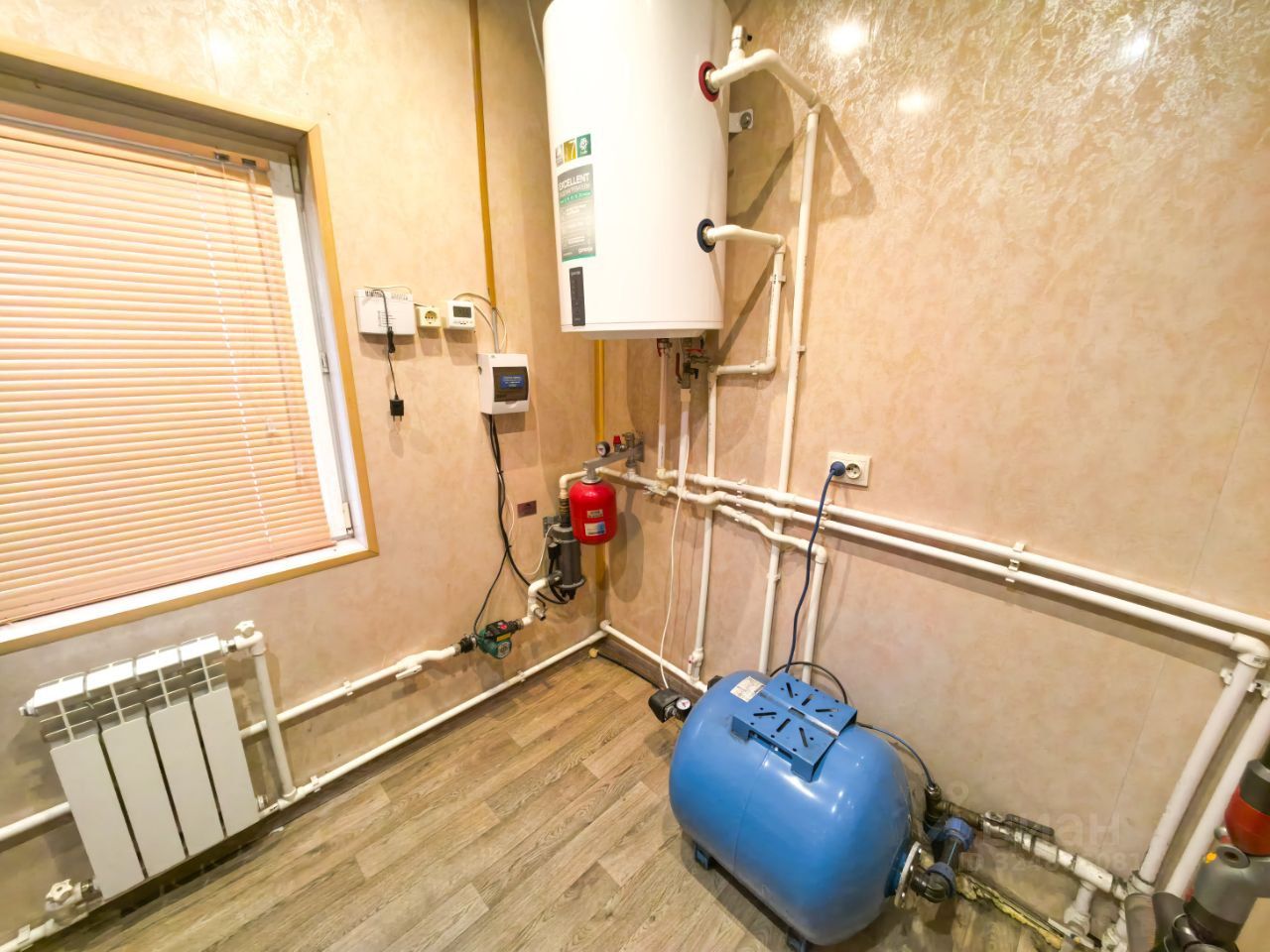 Во всех комнатах двойные полы с утеплителем. Жалюзи. Отопительные батареи. В дом подведено электричество (15кВт). Договор на оплату электроэнергии заключен напрямую с Мосэнерго. Питьевая вода из собственной скважины, канализация (септик).