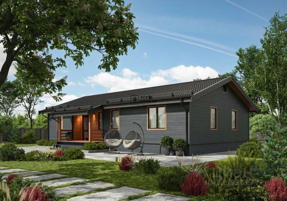 Одноэтажный коттедж с кухней-гостиной, 3-мя спальнями, 2-мя санузлами, 2-мя гардеробными и котельной с общей площадью 128.1 м2 сочетает в себе великолепие, простор и изысканность. Это прекрасное архитектурное решение для жизни большой семьи за городом.